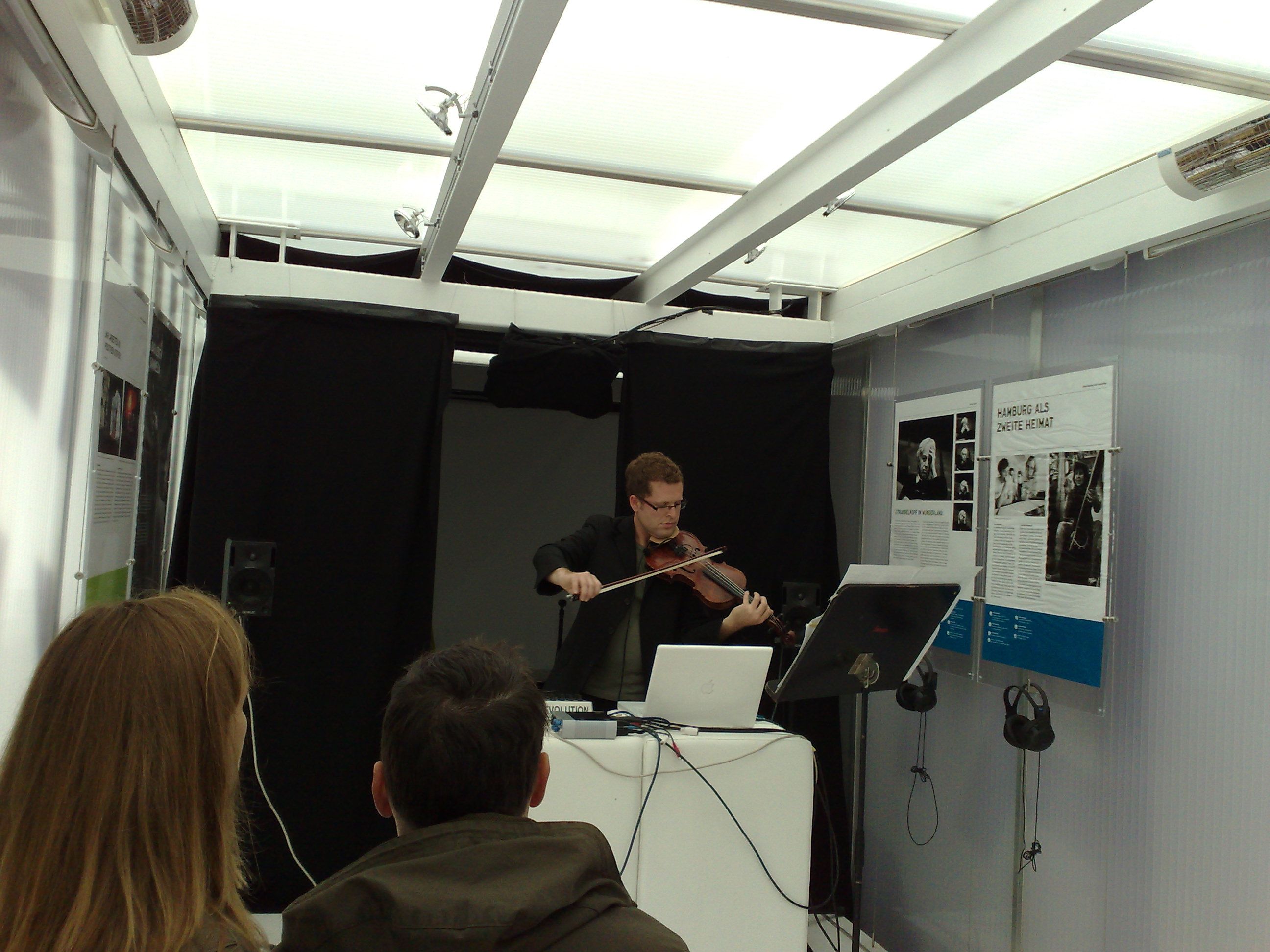 “Spectral Scapes” for violin and laptop by Martin von Frantzius (Premiere: February 28th, 2005, HfMT Hamburg ) is a formally through-composed piece, which still provides space for improvisation and interaction.